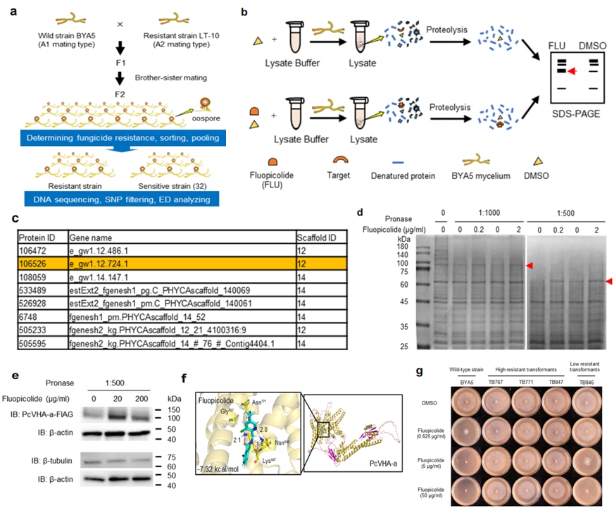 2024年1月西北农林科技大学刘西莉教授团队在Journal of Agricultural and Food Chemistry上发表了题为Unveiling Vacuolar H+‑ATPase Subunit a as the Primary Target of the Pyridinylmethyl-Benzamide Fungicide, Fluopicolide的文章,本研究利用BSA-seq和DARTS技术筛选到杀菌剂氟吡菌胺在辣椒疫霉菌中的靶点蛋白V-ATPase的a亚基(VHA-a),进一步的研究发现VHA-a在所有抗性突变体中均发生了氨基酸位点突变,且PcVHA-a上的4种点突变类型可以导致辣椒疫霉对氟吡菌胺产生抗性。本研究对后续进一步开展该类药剂的化学结构优化改造以及靶向农药的设计提供了重要的理论支撑。