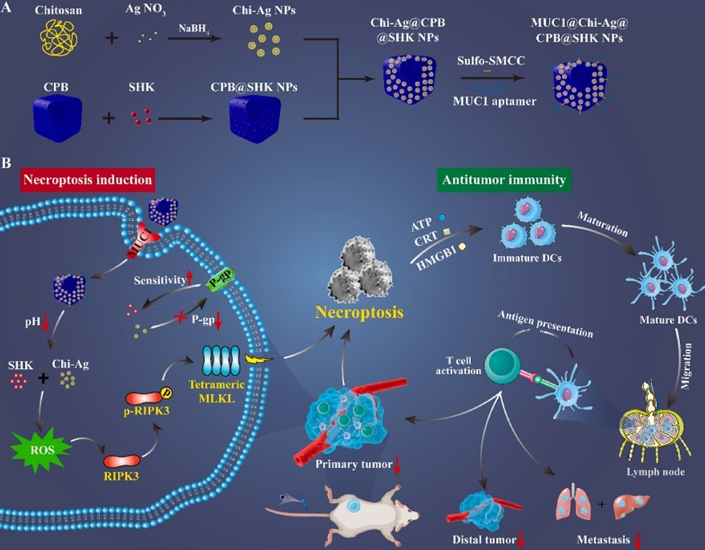 【5】Liang J, Tian X, Zhou M, et al. Shikonin and chitosan-silver nanoparticles synergize against triple-negative breast cancer through RIPK3-triggered necroptotic immunogenic cell death. Biomaterials. 2024;309:122608. doi:10.1016/j.biomaterials.2024.122608