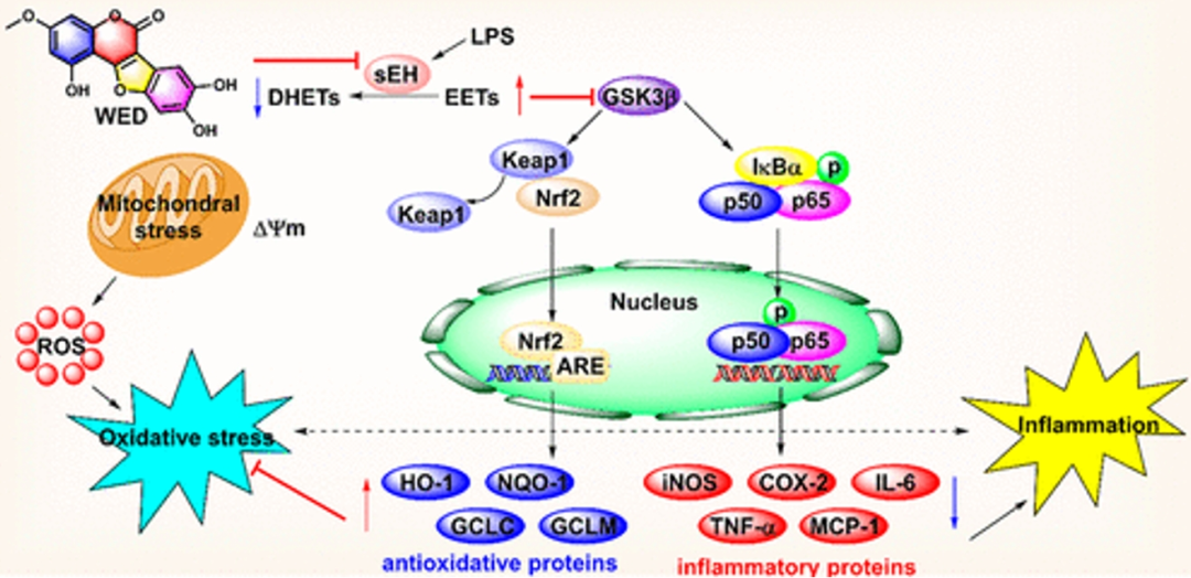| 04、团队整合靶点筛选与验证技术揭示蟛蜞菊内酯通过靶向可溶性环氧化物水解酶减轻炎症和氧化应激反应